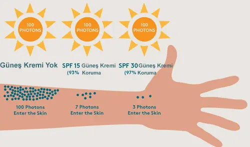 SPF, “Sun Protection Factor” yani Güneş Koruma Faktörü’nün kısaltmasıdır. Cildin güneşin zararlı UVB ışınlarına karşı ne kadar süreyle korunacağını gösterir. Örneğin SPF 30 içeren bir güneş koruyucu, cildin güneş yanığına karşı 30 kat daha fazla korunmasını sağlar.