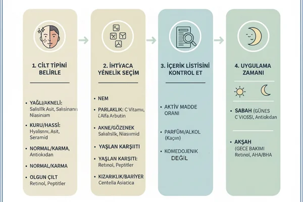 Sabah: Hafif nemlendirici etkili, antioksidan içeren serumlar (örneğin niacinamide).