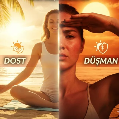 Güneş, D vitamini deposu. Ama aynı zamanda UV ışınlarıyla cildin DNA’sına kadar inebilen bir mikro sabotajcı! Yani evet, güneş moralimizi yükseltir ama aynı zamanda: