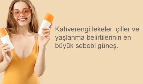 Kahverengi lekeler, çiller ve yaşlanma belirtilerinin en büyük sebebi güneş. İşte burada yüz için güneş kremi devreye giriyor. Düzenli kullandığında yeni leke oluşumunu engelliyor, mevcut lekelerin koyulaşmasını durduruyor. Yani aslında en iyi anti-aging ürünü cildine her gün sürebileceğin güneş kremi.